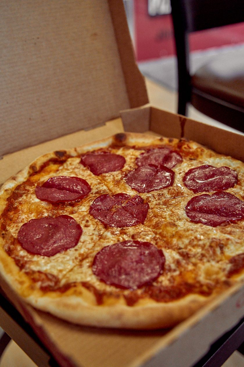 Frisch gebackene Pizza aus dem Steinofen, belegt mit ausgewählten Zutaten, aromatischer Tomatensauce, knusprig, herzhaft und mit Liebe zubereitet.